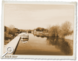 15:32 Uhr, auch am Kraftwerk gab's keine Fische.Wir befinden uns in der 'Anlegphase' auf den nördlichen Anleger von Shannonbridge. Da der Wind mittlerweile immer heftiger wird, und ich das Wohlbefinden vom Smutje im Hinterkopf habe, will ich auf der Innen- bzw. Land zugewandten Seite an den Anleger gehen. Dazu muss ich aber einen großen Bogen fahren um hinten die Einfahrt besser zu 'treffen'. Perfekt, wir kommen genau mittig auf die Einfahrt zu. Leider muss ich jetzt aber das Gas rausnehmen. Das hat zur Folge, daß das Ruder kaum noch reagiert. Bei der großen Angriffsfläche die unser Boot bietet, hat der starke Seitenwind leichtes Spiel uns bedrohlich nahe ans Ufer zu treiben. Mit einen beherzten hart Steuerbord und einem kräftigen Gasstoß kann ich gerade noch vermeiden den Begrenzungsmarker zu rammen.