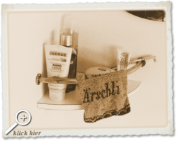 15:22 Uhr, da ist es wieder passiert. Bei Schriftstellern spricht man gelegentlich von einer Schreibblockade. Ich will zwar nicht schreiben, aber jedes mal wenn ich hier im Bauleiterklo stehe und der Sache freien Lauf lassen will, bin ich blockiert. Das permanent der Klodeckel unten ist und nicht auf Standby steht, daran hab ich mich über die Jahre schon gewöhnt. Mal abgesehen von dem Waschlappen mit der Aufschrift "Fürs Ärschli" würde ich die Gesamtatmosphäre hier in der Nasszelle als beklemmend antiseptisch bezeichnen. Alles glänzt und ist porentief rein. Angesicht der Tatsache, daß nicht mal S…haare auf dem Boden liegen und sogar der Beckenrand scheinbar poliert ist, bekomme ich ein schlechtes Gewissen. Da hab ich immer im Hinterkopf, daß sich trotz größter Sorgfalt, anschließender Beckenrandendreinigung und wiederholter Sichtkontrolle trotzdem noch irgendwelche Restpuren finden lassen. Wenn dann der Bauleiter eine Nachkontrolle durchführt, wovon ich ausgehe, dann ist die Kacke wieder am Dampfen. Ihm, als bekennenden 'Sitzpinkler', kann sowas natürlich nicht passieren. Aber in Zeiten wo die letzten männlichen Bastionen fallen oder schon gefallen sind, die Frau schon lange nicht mehr am Herd steht und sogar ihre eigene Kreditkarte besitzt, möchte ich wenigstens noch meinen Mann 'stehen', und wenn es nur noch beim Pinkeln ist.