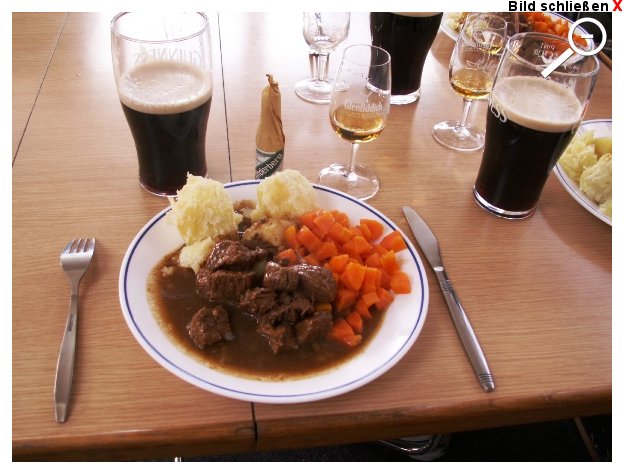 | Richtiges Bier und Landgang mit Idiotentest 15:02 Uhr, irgendwer hier an Bord muss Gedanken lesen können. Als ich wieder an Bord komme sind bereits sechs Whiskey und Guinness eingeschenkt. Das nenn ich doch mal perfekten Service. Dieter ist tatsächlich pervers, der haut sich schon wieder Zucker in's Bier. 15:16 Uhr, es gibt Mittag. Gulasch mit Möhrengemüse und Kartoffeln. Ist mal was Anderes, schmeckt aber vorzüglich. Abgerundet wird das noch mit einem 'Verdauungsschnaps', um mal einen anderen Begriff als U-Berg zu verwenden. 16:12 Uhr, zwei Runden Whiskey und Guinness später schaut Dieter aus dem Fenster und meint:"Da drüben gibt's 'richtiges' Bier !". Damit meint er das Boot gegenüber, wo paar Büchsen Heineken auf dem Tisch stehen. "Das würde mir jetzt auch schmecken ", fügt er noch hinzu. Was ich allerdings nicht verstehe ist die Kombination 'richtiges' Bier und Heineken. Aber wer sich permanent Zucker ins Guinness haut, der assoziiert auch dieses 'Gebräu', also Heineken, mit Bier. 16:42 Uhr, der Sturm schein immer heftiger zu werden. Da es mittlerweile auch angefangen hat zu regnen ist mit einem Landgang eher nicht zu rechnen. Das ist eine gute Gelegenheit für einen gepflegten Mittagschlaf. 18:46 Uhr, es regnet immer noch in Strömen. Aber es scheint die Sonne, die einen herrlichen Regenbogen in den Himmel zaubert. 18.50 Uhr, der Smutje serviert Tee. Dummerweise hab ich mich bei dessen Frage nach der 'Wunsch'-Sorte für die falsche Mischung entschieden. Der von Grube empfohlene und hochgelobte "Irish Cream" riecht nicht nur wie Parfüm, der schmeckt auch so. Jetzt brauch ich doch glatt 'nen U-Berg zur 'Geschmacksneutralisation'. 19:20 Uhr, wir befinden uns auf Landgang. Auf der Brücke, die über den Shannon führt, muss man echt aufpassen, daß einen der Sturm nicht aus den Schuhen haut. Mit dem Boot möchte ich jetzt jedenfalls nicht unterwegs sein müssen. Als wir vor'm "SuperValue" stehen, vergattere ich den Smutje noch bezüglich des geplanten Zeitfensters für den Einkauf. Nicht daß der wieder für Stunden als verschollenverschollen Siehe Tourtagebuch-2014 Tag-2 / 18:16 Uhr "Verschollen im SuperValue" gilt. Desweiteren bekommt jeder die Aufgabe eine 2L Flasche Wasser mitzunehmen. Damit in diesem Zusammenhang später mal keine peinlichen Fragen gestellt werden können, wird ein absolutes 'Fotoverbot' ausgesprochen. 19:58 Uhr, das mit der Vergatterung hat funktioniert. Wir sitzen vollzählig, inklusive dem Smutje, im Pub "The Life Belt Bar". Holger hat bereits sechs Guinness geordert, die uns der Wirt persönlich an den Tisch bringt. Ein gepflegtes Guinness auf dem Tisch und zuschauen wie draußen der Sturm tobt, so macht Urlaub Spaß. Sláinte! 20:38 Uhr, Grube hat noch 'ne zweite Runde Guinness vorne am Tresen bestellt. Scheinbar um die Zeit totzuschlagen, ist irgendwer auf die Idee gekommen 'Tiereraten' zu spielen. "Es hat 'nen Schwanz und lebt im Dschungel ", ist nur eine von mehreren sinnfreien Ratefragen. Mehr getraue ich mir hier gar nicht zu schreiben. Nicht daß man uns dann noch zum Idiotentest schickt. |