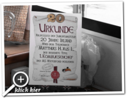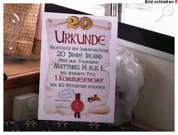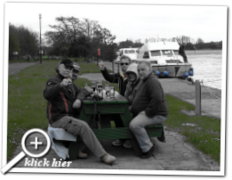 12:06 Uhr, mittlerweile ist eine der am Anleger gelegenen hölzernen Sitzgruppen in Beschlag genommen. Dieter platziert diverse Guinness auf dem Tisch und schenkt die nächste Runde "Writers Tears" ein. Prost auf den Opa!
