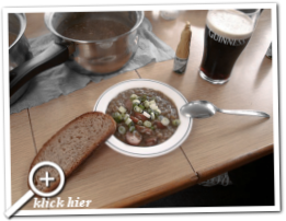 13:40 Uhr, der Smutje serviert Linsen-Eintopf. Selbstverständlich gibt's wieder zwei Varianten. Einmal süßsauer mit Zucker, Essig und Blutwurst sowie die 'bessere' Variante für den Käpt'n. Die ist natürlich ohne Zucker aber dafür mit Knackwurst. Aus seinem Fehler vom letzten Jahr gelernt, hat der Smutje diesmal bei meinen Linsen auch auf den Essig verzichtet. Genau so mag ich es, schön herzhaft und keinesfalls süß oder sauer. Das ist absolut nicht mein Ding. So gut die Linsen auch schmecken, aber ein richtiges 'Feiertagsessen' ist das eigentlich nicht. Früher gab es da mindestens Hechtspieße. Gut, wenn die für die Fischbeschaffung zuständigen Tourteilnehmer ihren Job nur mangelhaft ausführen, kann der Smutje sich die Dinger auch nicht aus den Rippen schneiden. Aber andere Jahre hat er dann wenigstens Eisbein oder Steak als Alternative angeboten. Kochen kann er ja, wie schon oft erwähnt, hervorragend. Was aber die Qualität und Timing des Speiseplanes betrifft, da besteht noch Luft nach oben.