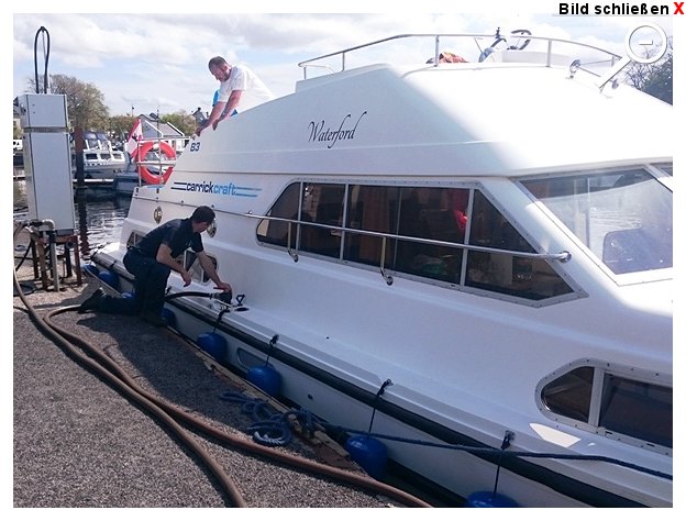 10:22 Uhr, wir liegen saugend zwischen zwei anderen Booten am Wasseranschluss.  Wenn ich mir jetzt so die Parkposition anschaue, dann drängt sich mir der Eindruck auf, daß ich das im 'Normalzustand' irgendwie nicht so hinbekommen hätte. Da hätte ich zumindest paar Züge mehr zum 'einparken' benötigt. Ich glaube, unter leichtem Einfluss von Destillaten bzw. deren Restwirkung denkt man nicht so kompliziert. Strömung, Windrichtung, Wellengang usw. spielen da nur eine untergeordnete Rolle. "Mann" verlässt sich da einfach auf sein 'Bauchgefühl' und setzt das Boot in die Lücke.