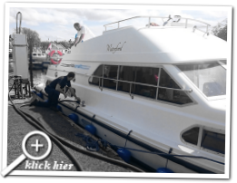 10:16 Uhr, Dieter bemängelt bzw. teilt mir mit, daß der Wasseranschluss wieder nicht mit dem Adapter an unserem Schlauch harmoniert. Weiter vorne am Steg sei aber ein anderer Wasserhahn der passen müsste. Leider reicht unser Wasserschlauch nicht bis dahin. Eigentlich hätte er auch gleich sagen können, daß ich das Boot 'umparken' soll.