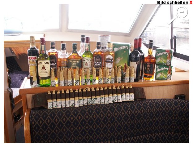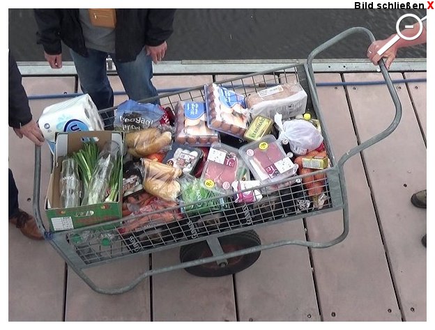 16:58 Uhr, der Einkaufstrupp kommt zurück. Wie es aussieht, waren die erfolgreich. Der Transportkarren -der eigentlich hier in der Marina dazu dient, das Gepäck an oder von Bord zu transportieren- ist gut gefüllt. Baguetten, Rotwein, Butter, Eier, Zwiebeln, Bohnen, Steaks, die Lammkeule und jede Menge Guinness. Eine gewisse 'Grundversorgung' wäre also gesichert. Damit kommen wir übers Wochenende. "Anderthalb Stunden von hier bis zum Supermarkt und zurück, das glaubt ihr doch selber nicht ", kann ich mir nicht verkneifen. "Ihr wart doch garantiert bei J.J. Houg ", füge ich noch hinzu. "Na Logo ", meint Husti. "Nur deshalb gehen wir ja einkaufen ". Holger erzählt, daß er die 'Sitzung' bei J.J. Hough abbrechen musste. "Die Aktion wäre sonnst 'unkontrollierbar' zu Ende gegangen ", meint er.