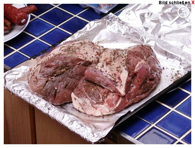 17:40 Uhr, Husti -im weiteren Verlauf nur noch Smutje genannt- hat sich in sein Revier -die Kombüse- verzogen, und beginnt dort klar Schiff zu machen. Wie in den vorangegangenen Jahren schon mehrfach erwähnt, steht ihm ja auf Grund seiner hervorragenden Leistungen im Bereich Catering und kulinarischer Betreuung der Titel "Chef de Cuisine" zu. Aber das ist mir echt zu lang um das im Laufe der folgenden sieben Tage gefühlte tausendmal zu schreiben. Deshalb der 'Arbeitstitel' Smutje. Aktuell bereitet er gerade die Lammkeule für morgen Mittag vor. Da tropft einem schon vom blosen hingucken der Zahn.