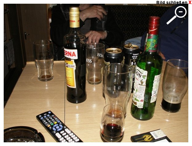 19:46 Uhr, "Noch 'ne Runde ?". Grube will nicht mehr, der schüttelt den Kopf. Ich biete ihm an ihn -wie bereits beim der ersten Guinness- zu unterstützen, wenn er's nicht schafft.
